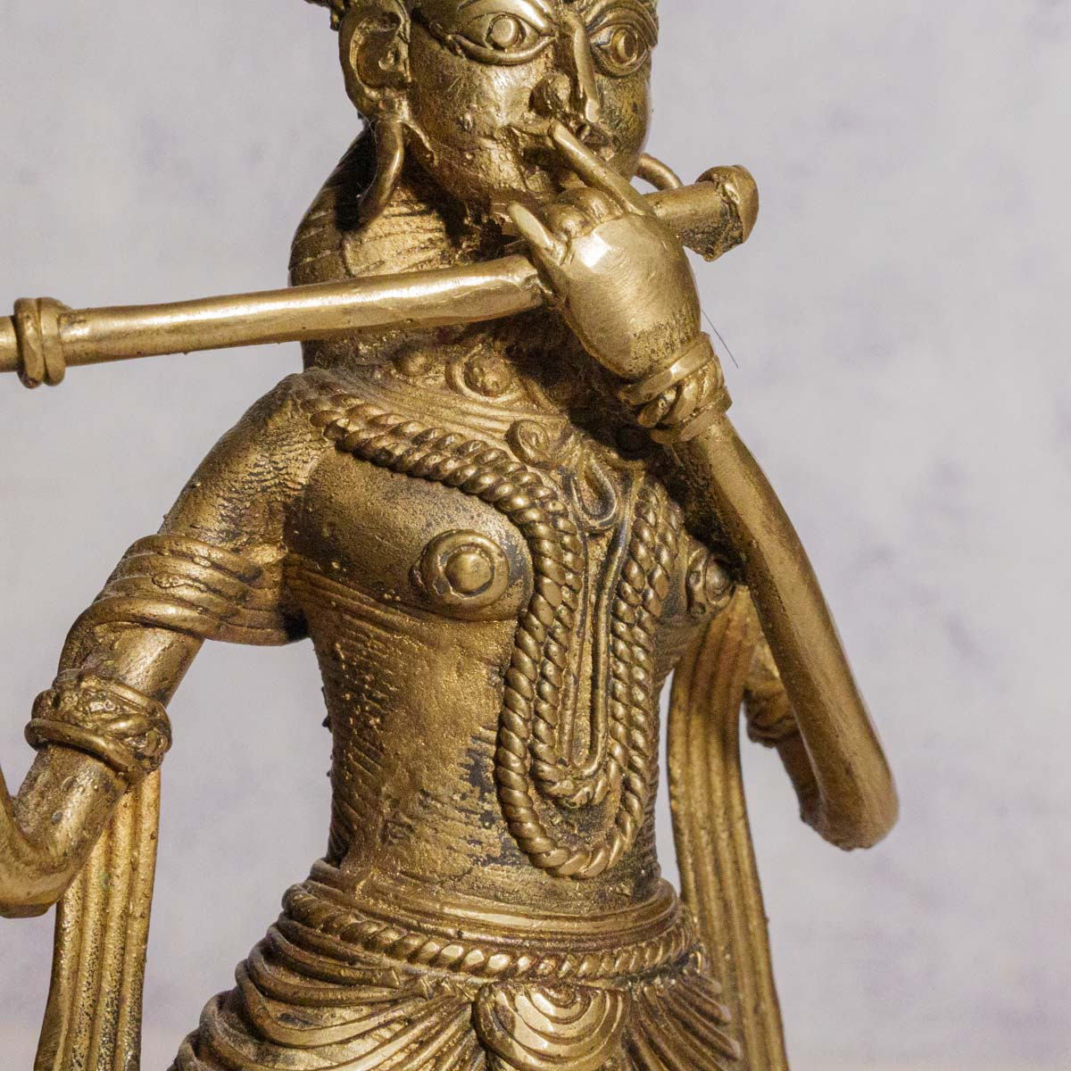 Although used previously to refer to a group of nomadic craftsmen, presently the term ‘Dhokra’ is essentially applied to a wide range of handcrafted decorated brassware products created by the ‘lost wax process of metal casting. Acknowledged as the earliest known method of non-ferrous metal casting known to mankind, this folk art originated in the heartlands of West Bengal almost 3500 years ago and is done by the traditional metalsmiths, ‘The Dhokra Damar Tribes’. Artisans these days create various figurines and models of gods, goddesses, animals, birds, carts, and even jewelry.