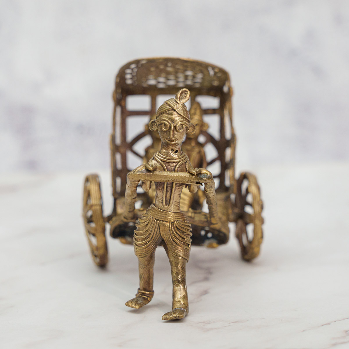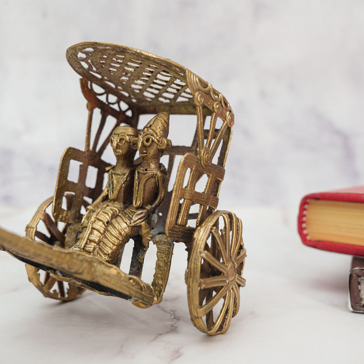 Although used previously to refer to a group of nomadic craftsmen, presently the term ‘Dhokra’ is essentially applied to a wide range of handcrafted decorated brassware products created by the ‘lost wax process of metal casting. Acknowledged as the earliest known method of non-ferrous metal casting known to mankind, this folk art originated in the heartlands of West Bengal almost 3500 years ago and is done by the traditional metalsmiths, ‘The Dhokra Damar Tribes’. Artisans these days create various figurines and models of gods, goddesses, animals, birds, carts, and even jewelry.