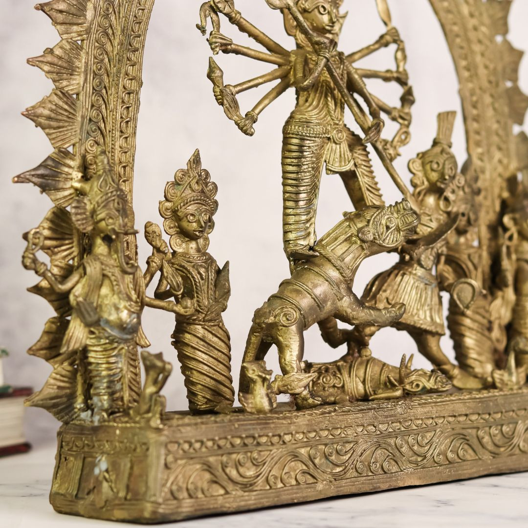Although used previously to refer to a group of nomadic craftsmen, presently the term ‘Dhokra’ is essentially applied to a wide range of handcrafted decorated brassware products created by the ‘lost wax process of metal casting. Acknowledged as the earliest known method of non-ferrous metal casting known to mankind, this folk art originated in the heartlands of West Bengal almost 3500 years ago and is done by the traditional metalsmiths, ‘The Dhokra Damar Tribes’. Artisans these days create various figurines and models of gods, goddesses, animals, birds, carts, and even jewelry.