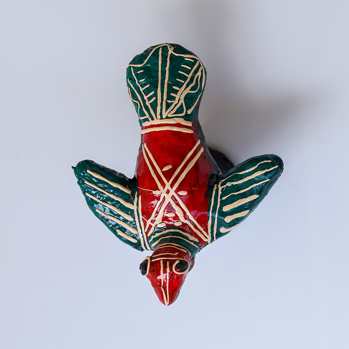 This set contains a figure resembling a bird made from Shellac/Gala.
