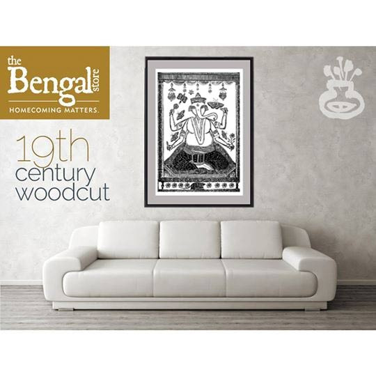 This 19th Century Bengal Woodcut was printed on newsprint like paper to keep the cost low. Due to the advent of lithography, the Battala woodcut printing had a remarkably short run and very few of these prints have survived the cheap paper and humid conditions of the region. Shri Ganesh, originally carved out on wood by Benimadhab Bhattacharya during the 19th Century has been plate-litho transferred by The Bengal Store for you.
