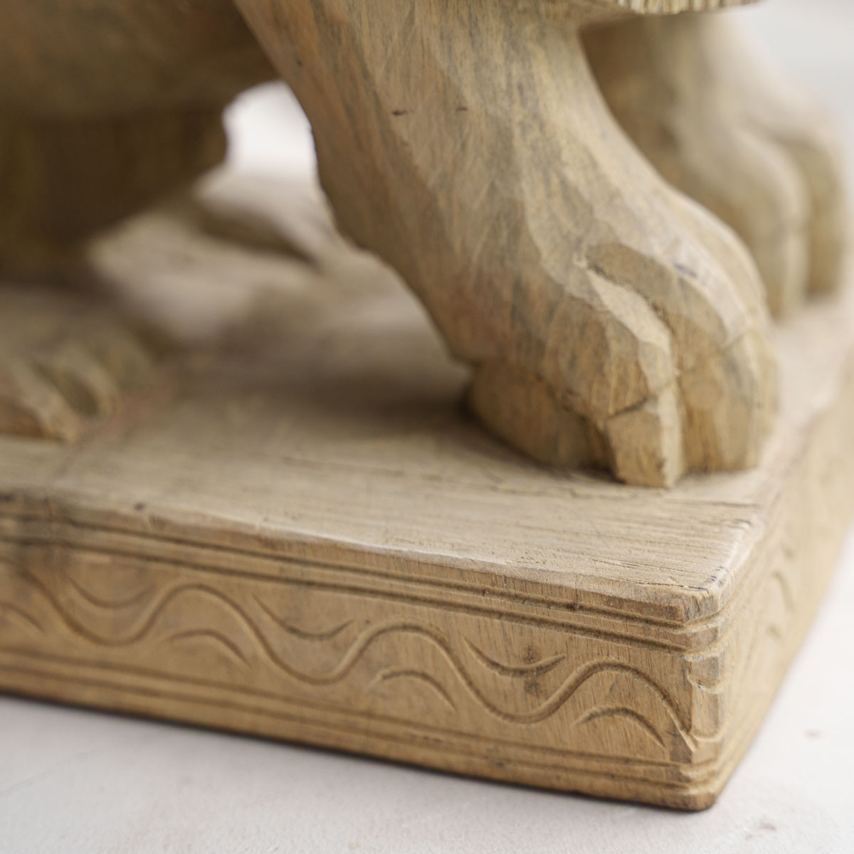 This figure depicts a Lion beautifully carved out of a single piece of wood.