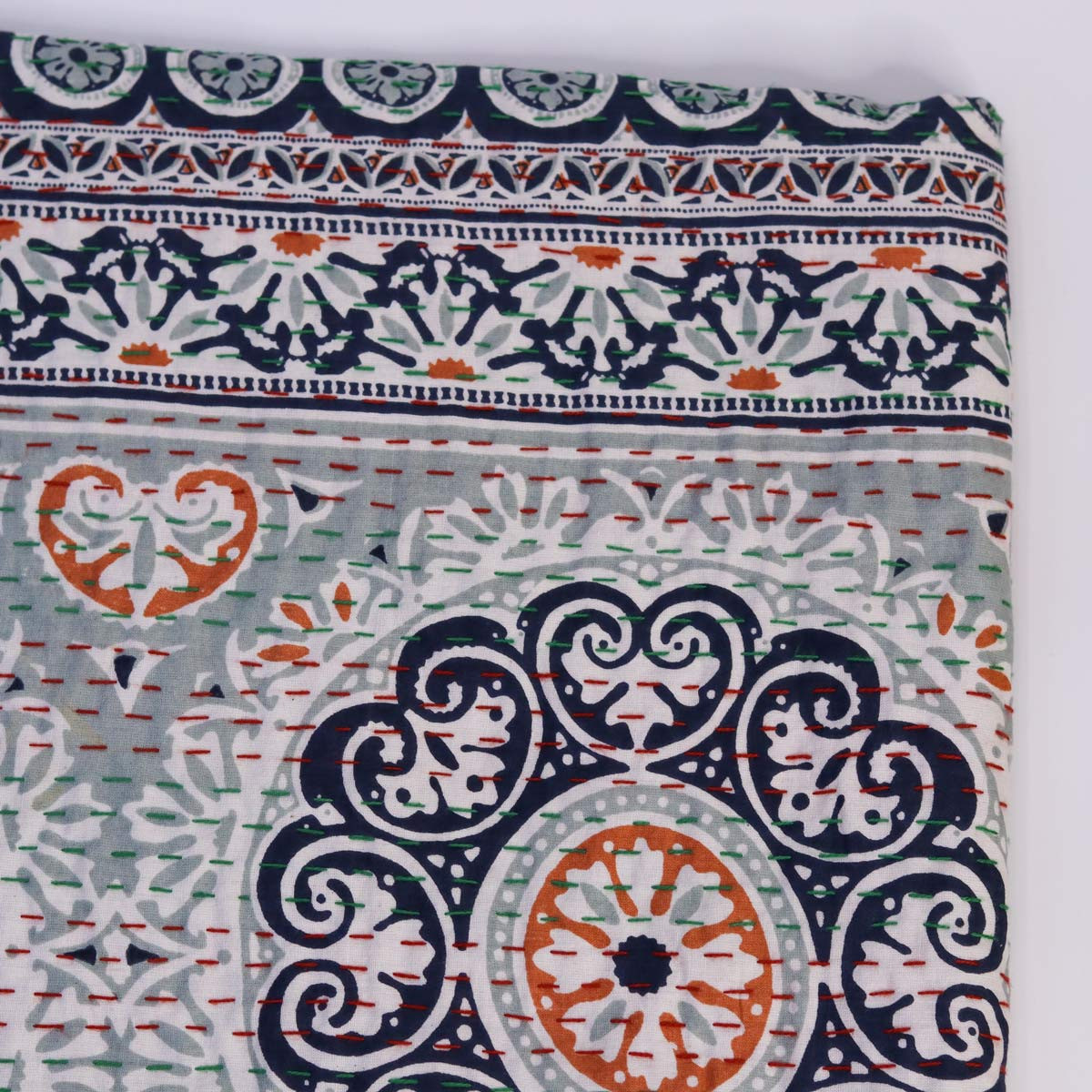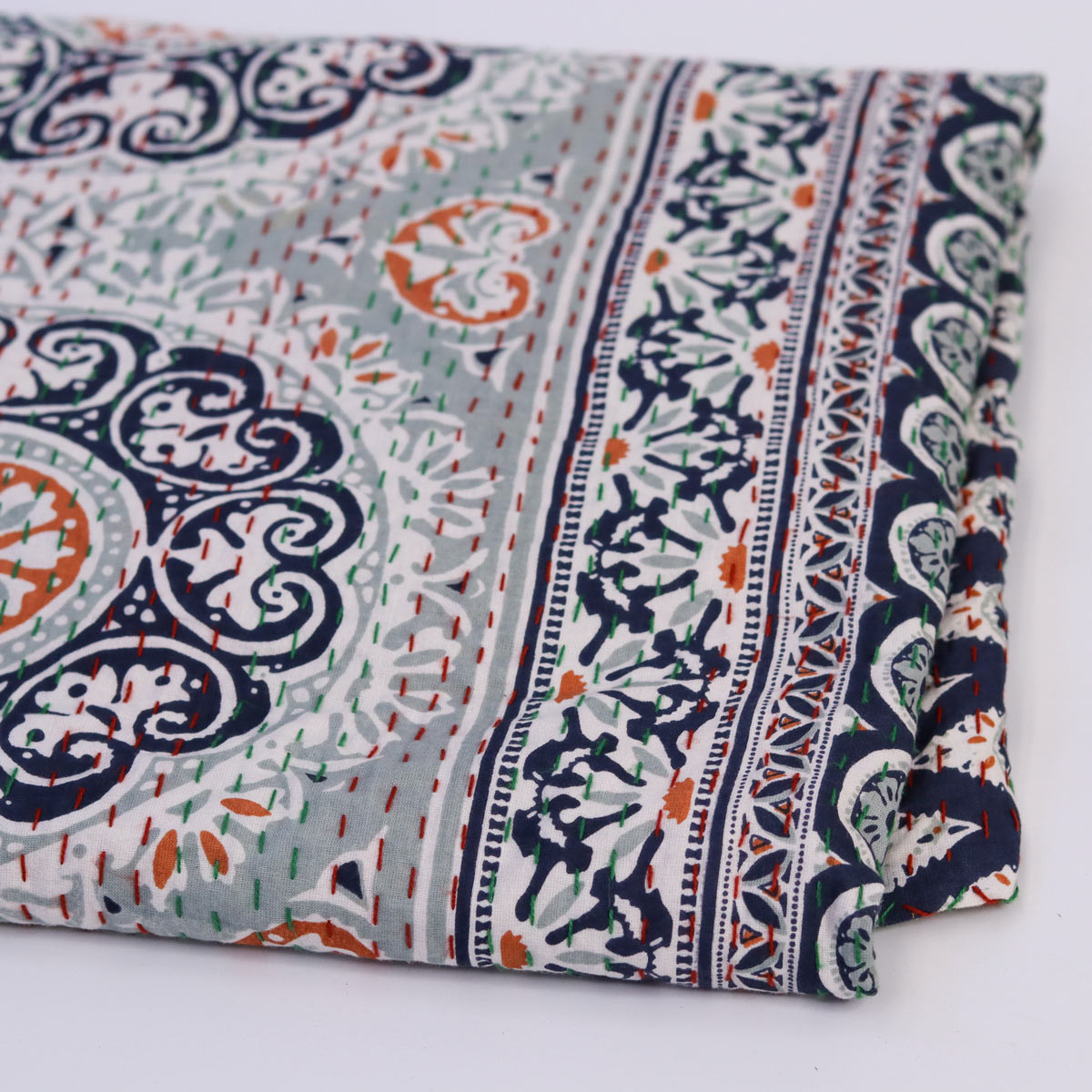 Kantha, a centuries-old traditional patchwork stitching, is one of the oldest forms of its kind in the Indian subcontinent. The origins of these crafts date back to the pre-Vedic period. Quilts are found in almost every household and could not only be used as a winter comforter but also as a bedspread or a sofa throw. This unique double-layered cotton quilt is a perfect addition to your home decor collection.