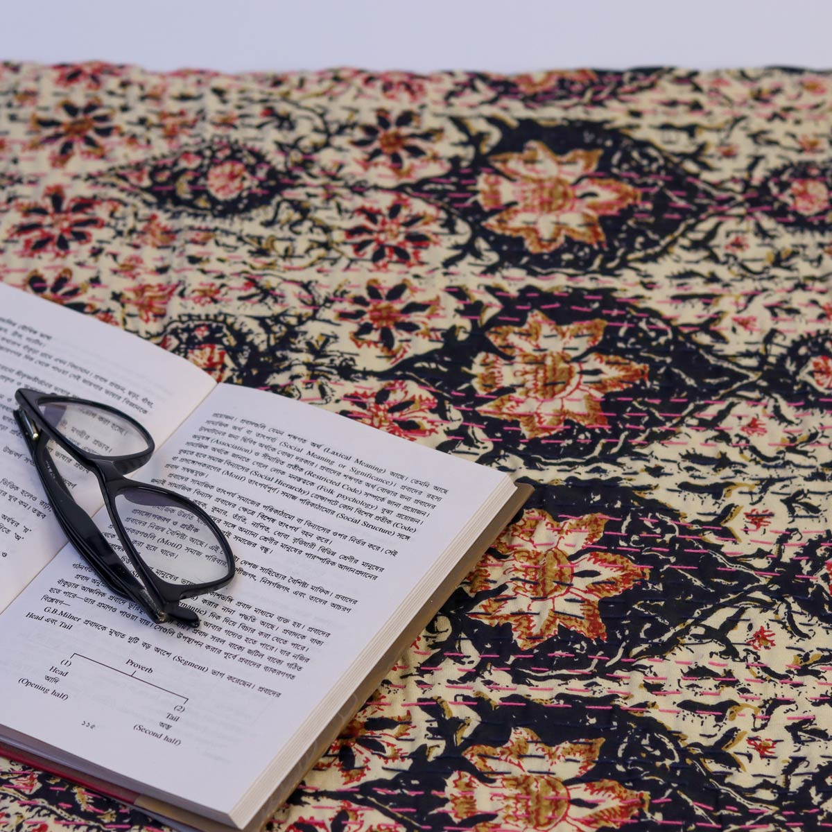 Kantha, a centuries-old traditional patchwork stitching, is one of the oldest forms of its kind in the Indian subcontinent. The origins of these crafts date back to the pre-Vedic period. Quilts are found in almost every household and could not only be used as a winter comforter but also as a bedspread or a sofa throw. This unique double-layered cotton quilt is a perfect addition to your home decor collection.